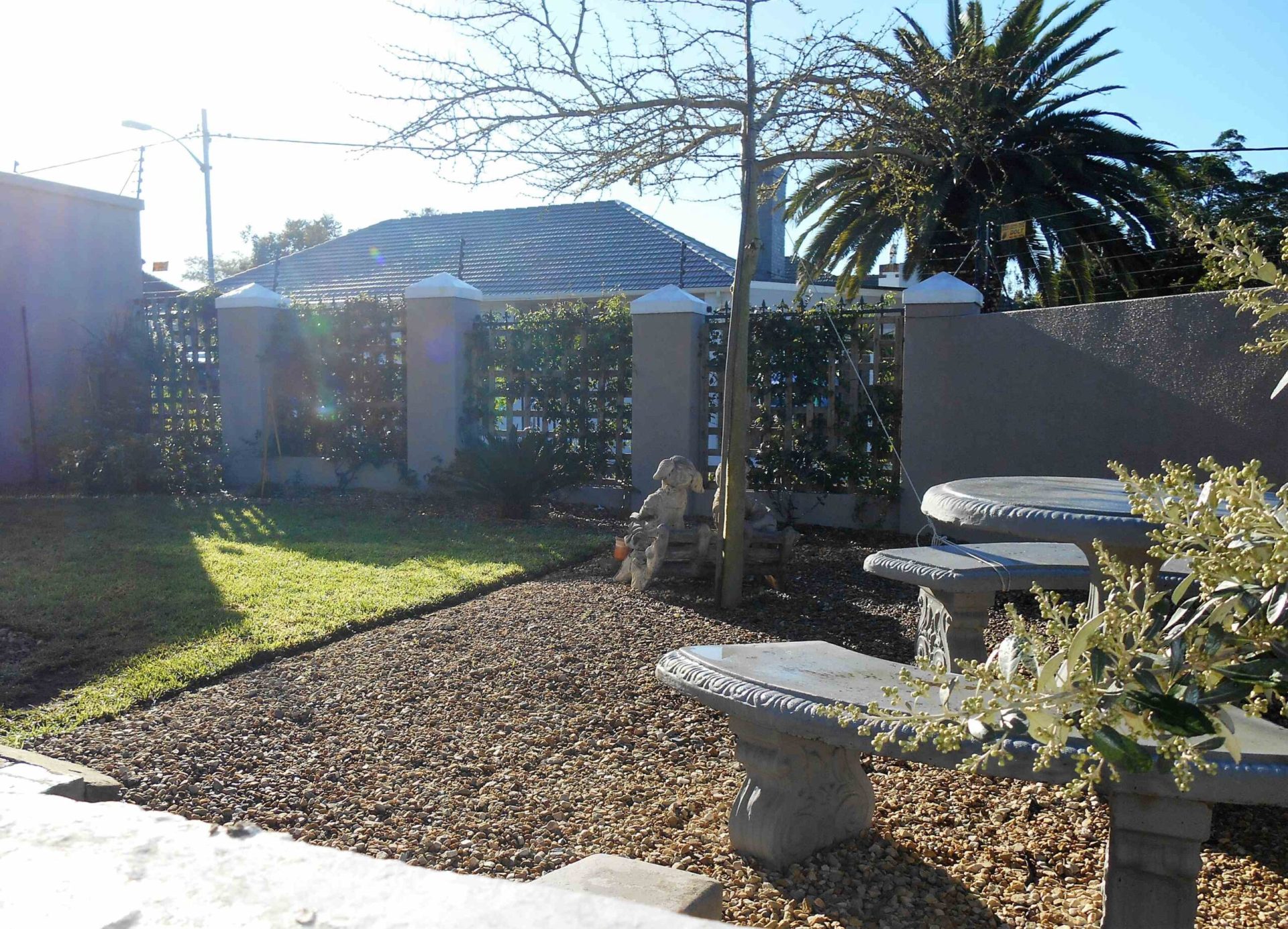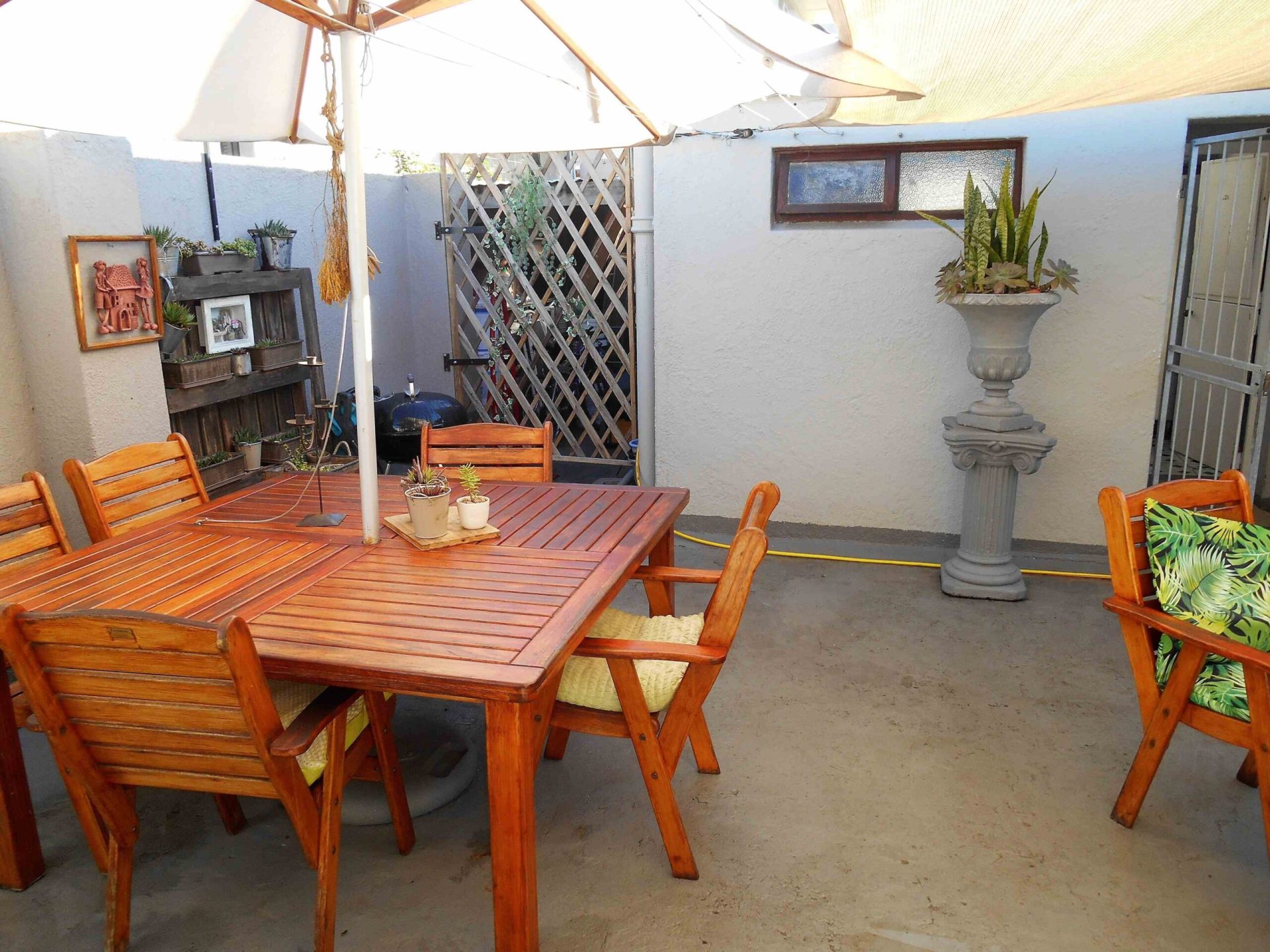 Relaxing, private outdoor court yard area with shade-netting. Additional storage space for gardening appliances.