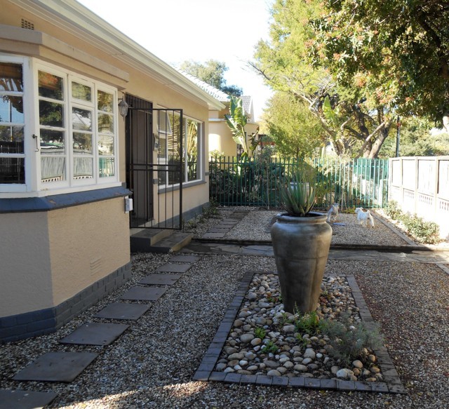 Single garage with remote controlled access and secure parking. Established garden with well point.