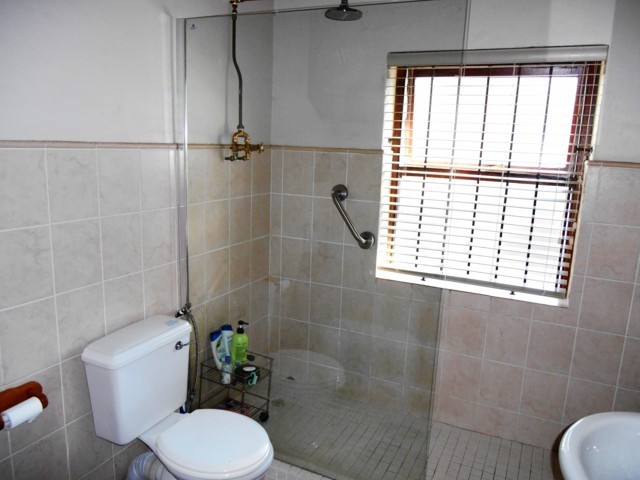 Modern bathroom with shower, basin and toilet.Â