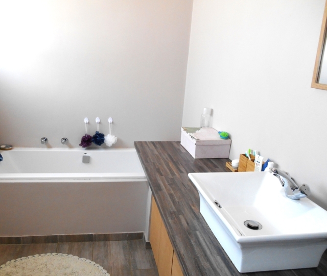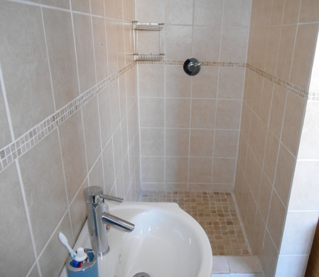 The family bathroom consists of bath, shower, basin and separate toilet.