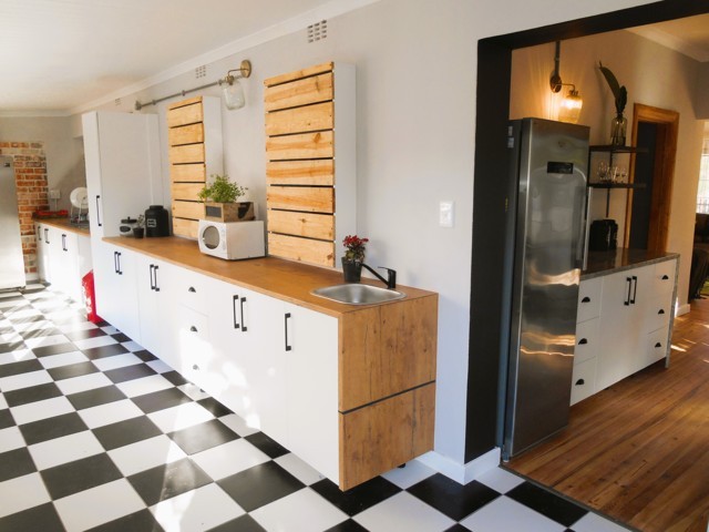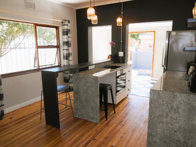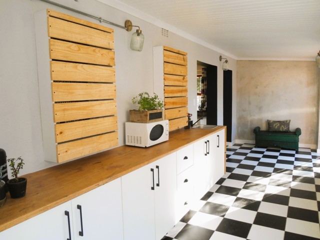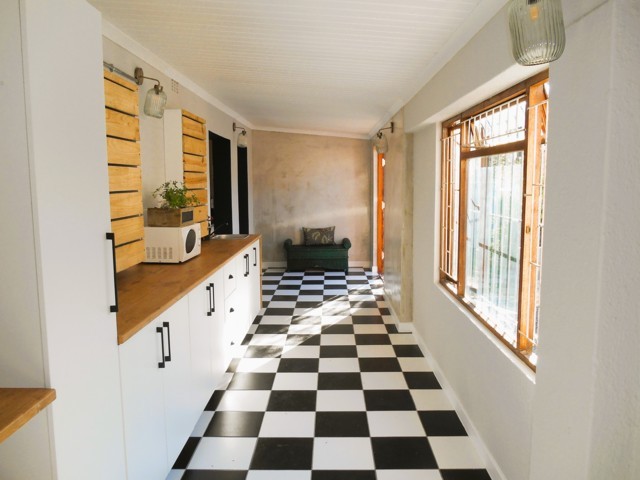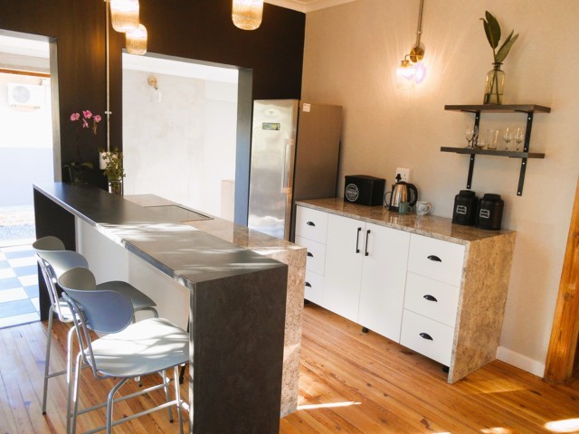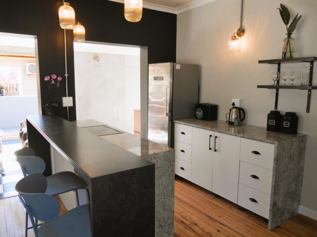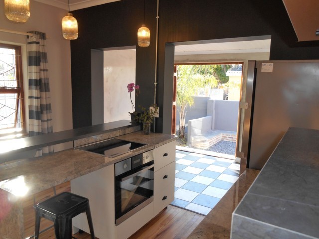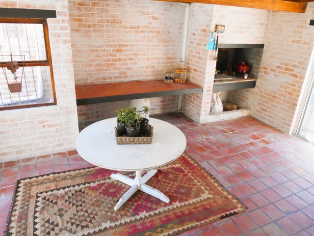 The kitchen is open plan with double doors leading to the outdoor entertainment area. Newly fitted glass hob and under counter oven. There is ample storage and work space. From the kitchen you have access to the braai room which also opens to the outdoor entertainment area.
