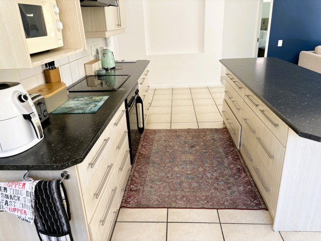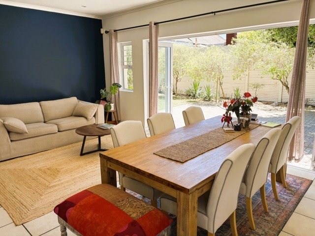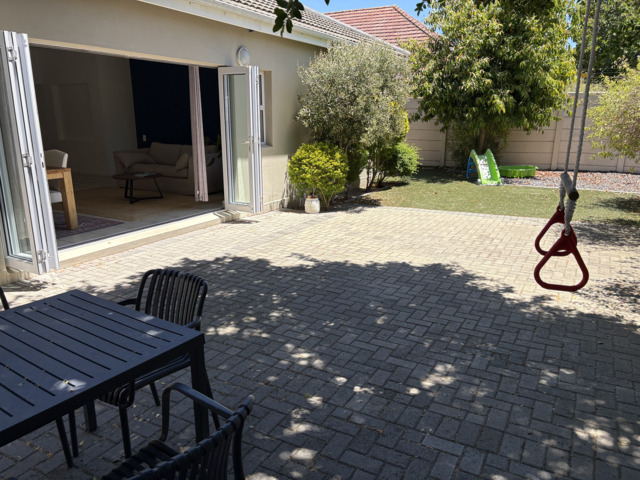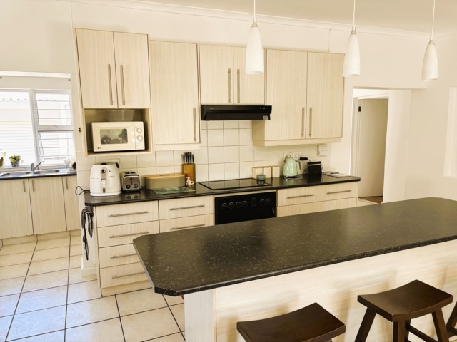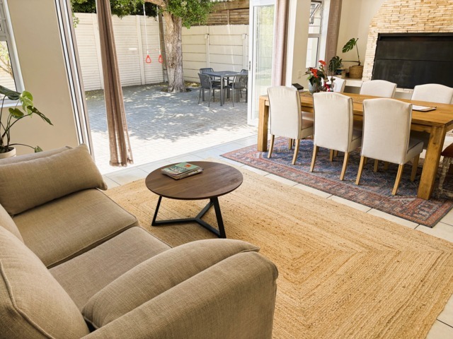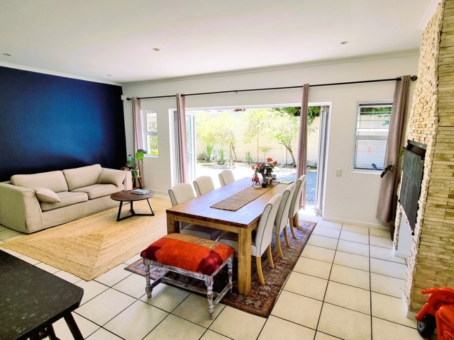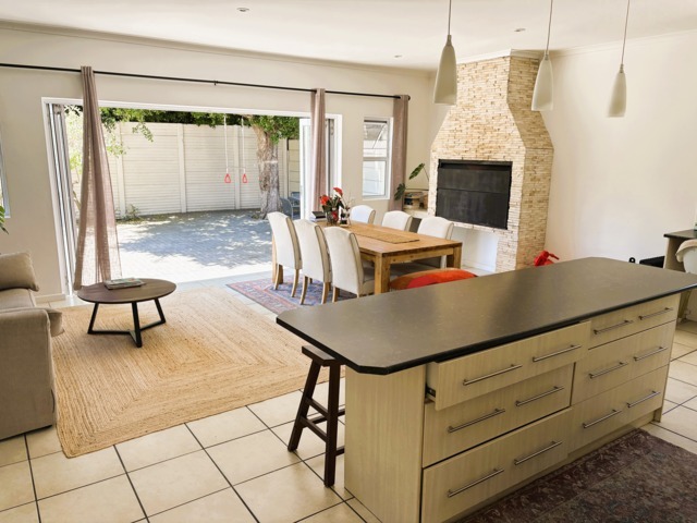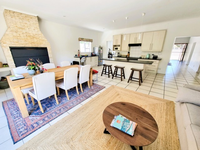 The open-plan lounge, dining, and kitchen area, complete with a built-in braai and wide stack doors creates a wonderful indoor-outdoor lifestyle. The stack doors allow the living area to flow effortlessly into the private back garden, This is perfect for entertaining or relaxed family gatherings.